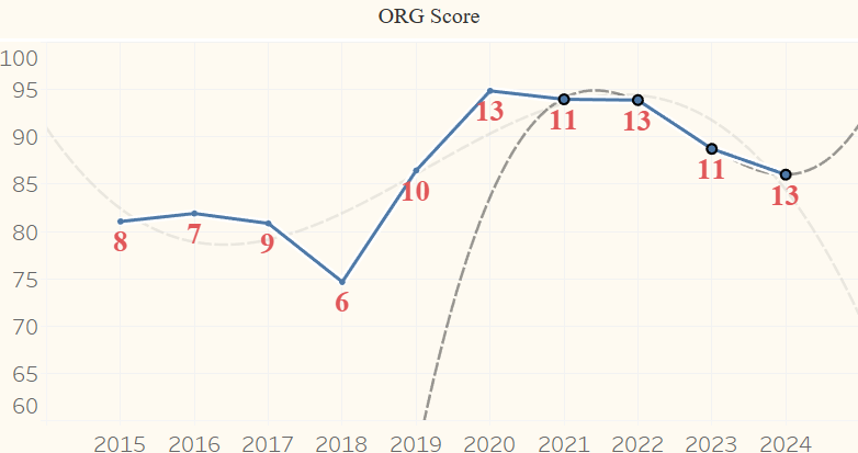 ORG Score – 2025 Prediction: 91 (12.0 wins)
