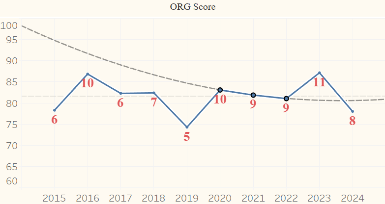ORG Score – 2025 Prediction: 80 (7.7 wins)