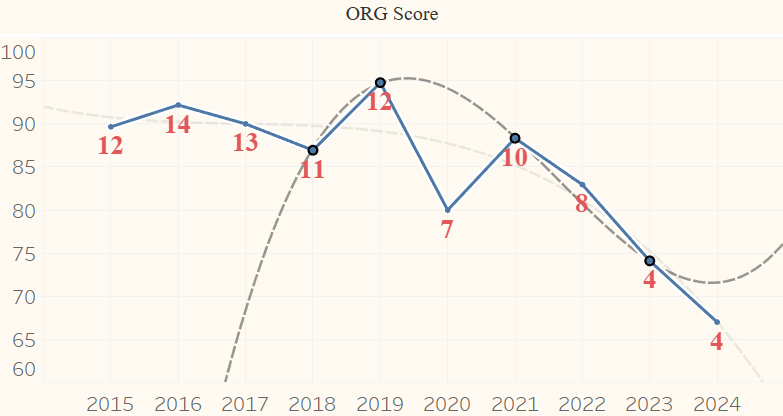 ORG Score – 2025 Prediction: 78 (7.0 wins)