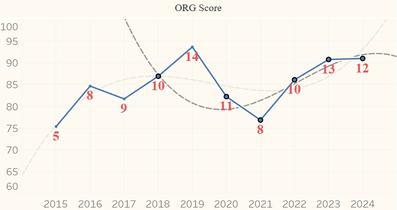 ORG Score – 2025 Prediction: 91 (12.0 wins)