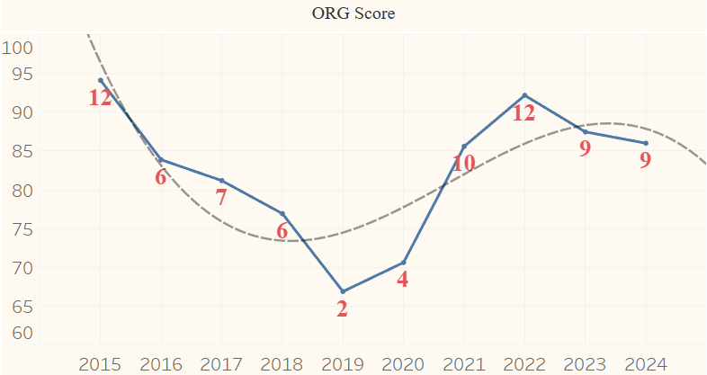 ORG Score – 2025 Prediction: 84 (9.3 wins)